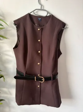 Conjunto Chaleco y Falda-Pantalón Marrón T.38