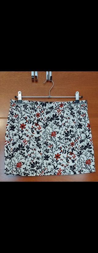 Chica. Minifalda MANGO. Flores rojas y negras. Talla 38.