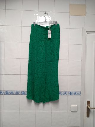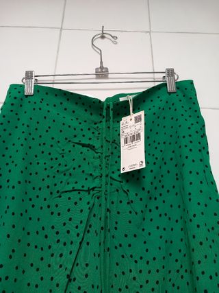 Falda midi verde Mango lunares Talla M