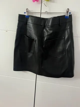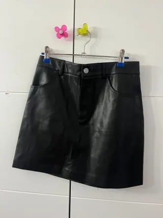 Minifalda de cuero sintético, con un diseño moderno y elegante. A estrenar, con etiqueta 🏷 - Cierre de cremallera y botón. - Bolsillos delanteros. - Tiro alto.