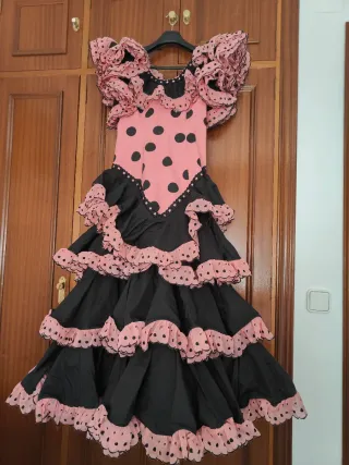 Vestido Flamenca Talla 44 Negro y Rosa