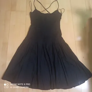 Vestido midi de Mango con tirantes finos cruzados. La falda tiene un vuelo ligero y está confeccionada con un tejido con caída. Da para talla S aunque ponga otra cosa. Medidas en las fotos. - Tirantes finos. - cuerpo fruncido. - Falda con vuelo. - Medidas en las fotos.