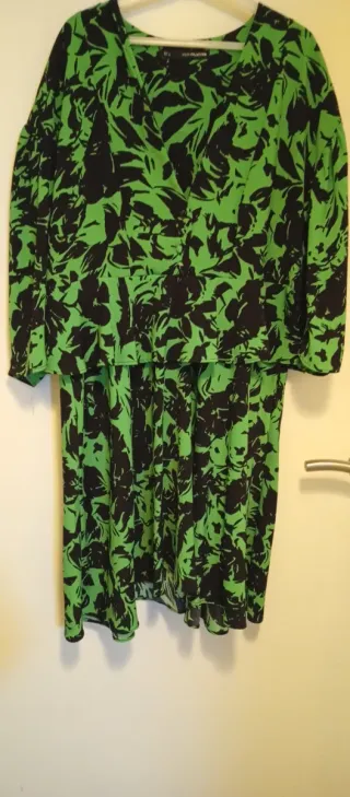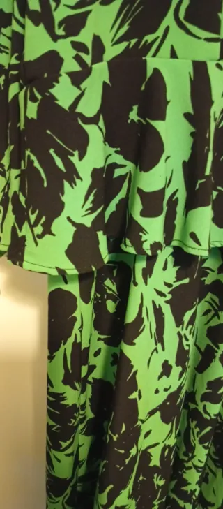 Vestido estampado de Sfera con un diseño llamativo. - Estampado floral en verde y negro. - Corte favorecedor estilo peplum. - Tejido ligero y cómodo. - manga 3 cuartos - falda corte en A ( con vuelo y movimiento)