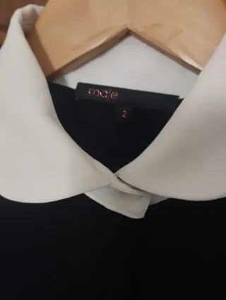 Vestido negro de la marca Maje con cuello blanco. Indica talla 2 Diseño con falda drapeada.Manga tres cuartos. Espectacular