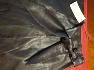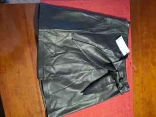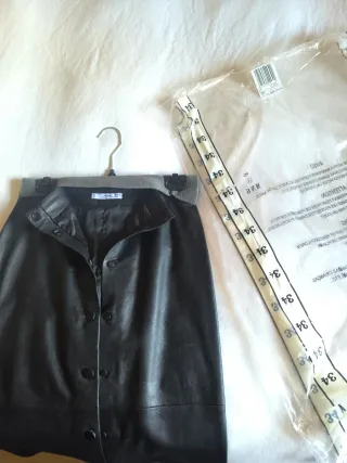 Falda de piel auténtica con detalles en contraste. - Diseño moderno y elegante. - Corte favorecedor. - Material de alta calidad. - Se ha utilizado en un par de ocasiones