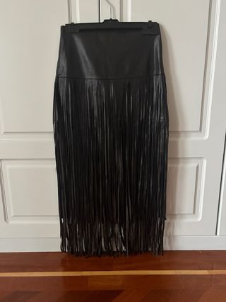 Falda piel marrón flecos