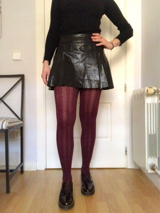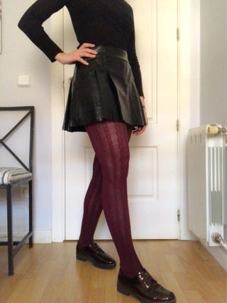 #zara #cuerosintetico #cuero #rock #festival Falda mini en piel sintética color negro. Cierre delantero con corchetes. Detalle cremallera en cintura. Bolsillos laterales con cierre de cremallera.