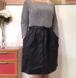 Vestido combinado Nuna Lie, color negro y blanco jaspeado, escote redondo y cremallera en la parte posterior, falda efecto piel con cinturon y bolsillos. Talla L. Composicion 73% Poliester 22% Rayon 5% Elastan Composicion inferior 60% Poliuretano 40% Rayon. Es nuevo con etiqueta, pero ha estado guardado y se han enganchado con algo y tienes un par de hilos sueltos (ver ultimas dos fotos) Medidas Hombros 40 cm Sisa a sisa 49 cm Manga 52 cm Cintura 40 cm Cadera 56 cm Largo 91 cm