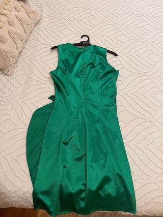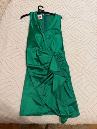 Vestido verde satinado con drapeado