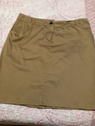 Falda vaquera de Mango, talla L. Un básico para tu armario. - Cintura elástica. - Dos botones en la parte delantera. - Bolsillos laterales. - No elástica.