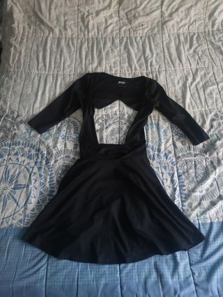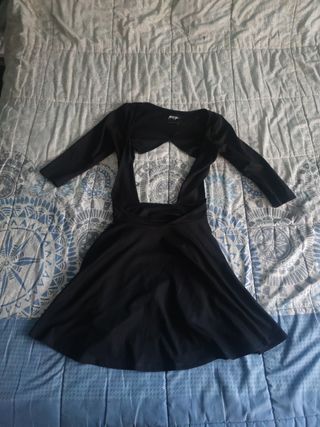 Vestido mini con chaleco negro de terciopelo,abotonado con 4 botones del mismo tejido. Tela de gasa con hilo metalizado y falda con forro. Manga acabada en puño elástico. ♡MEDIDAS 📏 📐 ♡CINTURA 44CM ♡CADERA 44-45CM ♡LARGO 80CM ☆COMPOSICIÓN ☆99%POLIESTER ☆1%FIBRA METALIZADA