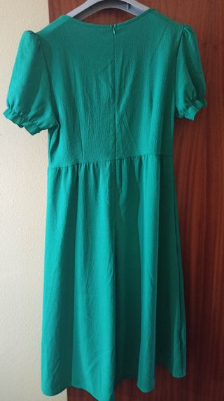 Vestido midi señora con manga corta y de farol. El cuerpo es entallado con un bonito bordado en el pecho. La falda midi con un poco de vuelo. Se cierra con cremallera en la espalda. ESTA USADO PERO SIN DEFECTOS!!! COMO NUEVO!!!!