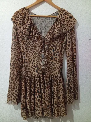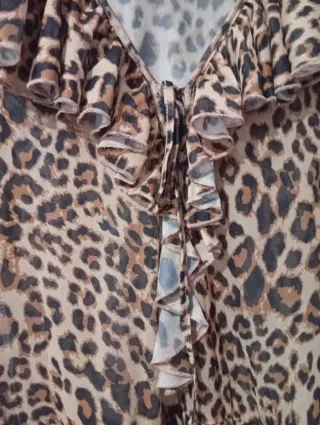Vestido con estampado de leopardo y volantes. - Manga larga. - Escote en V. - Volantes en el escote y la falda. - Cintura elástica.