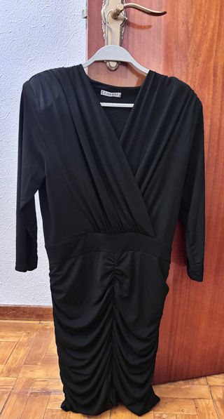 Vestido de corte cruzado con detalle de fruncido en la falda. PRECIO NEGOCIABLE - Manga larga. - Escote en V. - Diseño fruncido en la parte delantera de la falda.