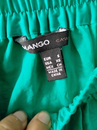 Falda satén verde Mango Talla S