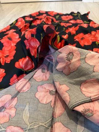 Vestido de Pull&Bear con un estampado floral vibrante y un diseño favorecedor. Aún conserva sus etiquetas. - Diseño cruzado. - Mangas largas acampanadas. - Falda con vuelo. - Tejido plisado.