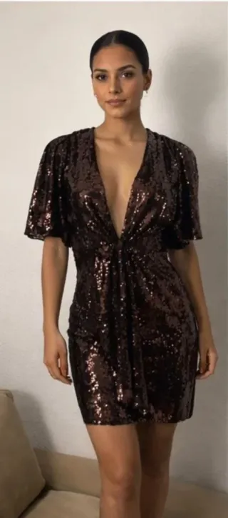 Vestido Zara lentejuelas marrón y negro