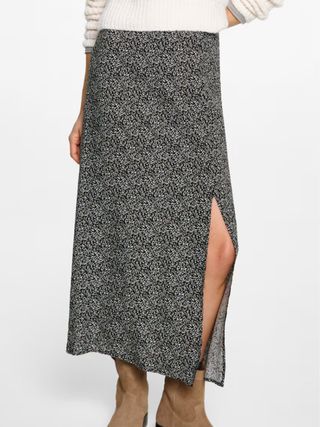 Falda midi con estampado floral de Mango. Es una prenda versátil y elegante. - Diseño con abertura. - Tejido ligero y fluido.