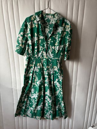 Vestido de algodón con un bonito estampado floral. - Diseño con cuello camisero. - Manga corta. - Cintura marcada. - Falda con vuelo.