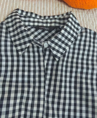 Vestido de manga larga con un diseño elegante y moderno. - Cuerpo superior negro liso. - Falda con estampado de cuadros. - Cintura con lazada. - Mangas largas. 152 cm