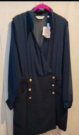 Nuevo!! Al 70% NO NEGOCIABLE Precioso diseño mangas de gasa, falda de paño, botones dorados 62cm pecho 102cm largo