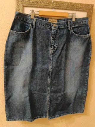 Falda larga de tejido tejano, con un diseño moderno y versátil. - Corte recto. - Abertura frontal. - Dos bolsillos laterales.