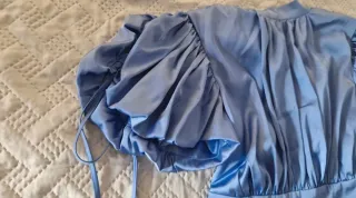 Elegante vestido azul de cóctel con un diseño favorecedor. Talla XL de Shein, pero su diseño es estilo bata, por lo que puede dar más talla - Manga larga. - Cinturón a juego. - Falda plisada. Usado solo una vez, en perfectas condiciones 😊
