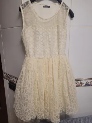 Vestido de encaje con un delicado diseño floral. - Talla 42. - Nuevo sin etiqueta 🏷. - Diseño sin mangas. - Escote redondo. - Falda con vuelo. - Envío rápido y cuidado👍.