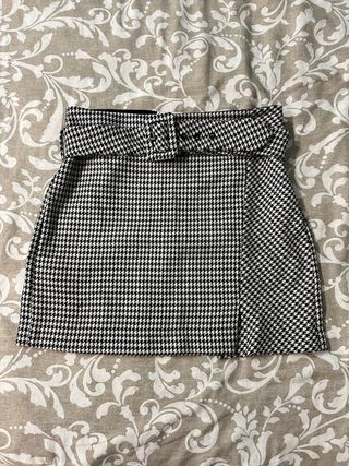 Falda con cinturón de Mango, pata de gallo blanca y negra. Talla xs. Como nueva, utilizada solo en una ocasión.