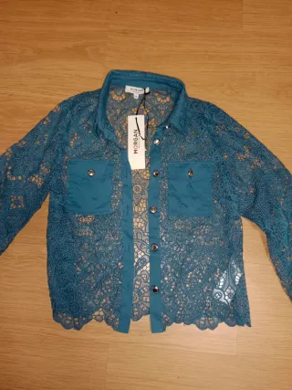Chaqueta de encaje con un bonito diseño. - Cierre de botones. - Dos bolsillos en el pecho. - Mangas largas. - Detalle de puntilla en el bajo.