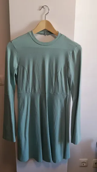Vestido de ASOS con un diseño elegante y moderno. - Color verde azulado. - Espalda con detalle semi descubierta. - Mangas largas acampanadas. - Corte a la cintura con falda con vuelo.