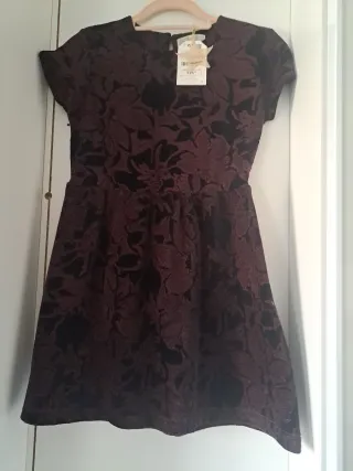 Vestido de niña con un bonito estampado floral. - Diseño con mangas cortas. - Falda con vuelo. - Tejido con brillo.