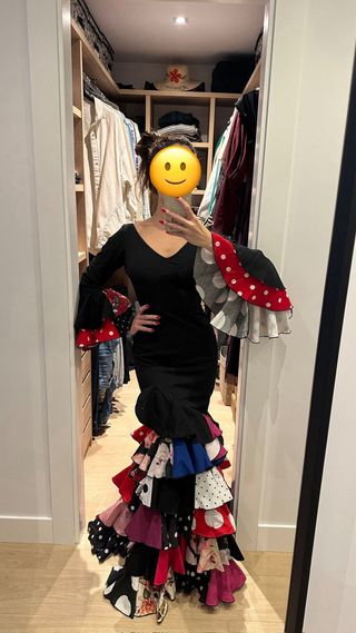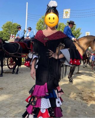 Traje de flamenca negro y multicolor