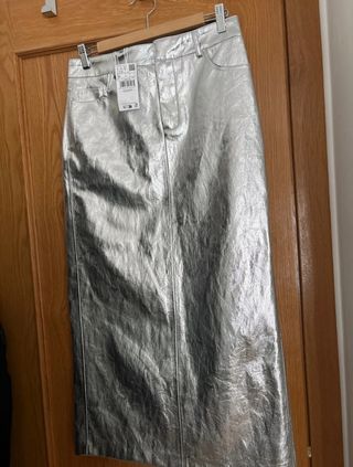 Falda Mango plateada talla 36