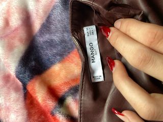 Prenda de vestir de cuero sintético. - Color marrón intenso. - Textura suave y flexible. - Diseño moderno.