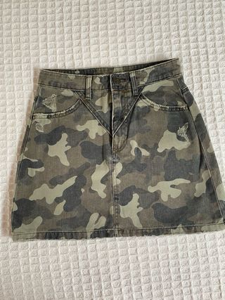 Falda corta con estampado de camuflaje. - Diseño de Stradivarius. - Tonos verdes y marrones.