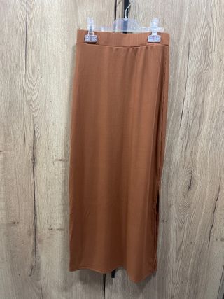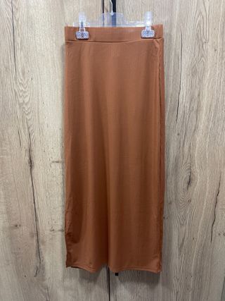 Falda de color marrón. - Diseño con caída. - Tejido suave.
