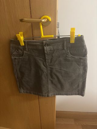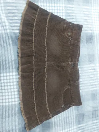 Falda corta de pana. - Diseño de cinco bolsillos. - Cierre de botón y cremallera. - Costuras reforzadas. Solo puesta una vez, si quieres un lote, mira en mi perfil y hazme oferta.