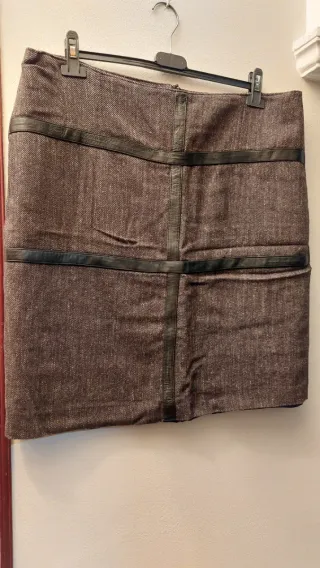 Falda de color marrón oscuro Mide de largo unos 54 cm y de cintura unos 49 cm Con botón detrás y pequeña cremallera , con forro interior Hago envíos por wallapop