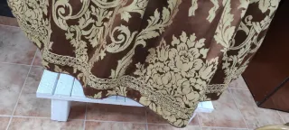 Falda de estilo fallero damasco 2 colores - Diseño damasquinado. - Cintura con cordón de pañal - Bajo con detalle de pasamanería, randa oro Largo 90cm Cintura 95cm ampliable porque es de pañal