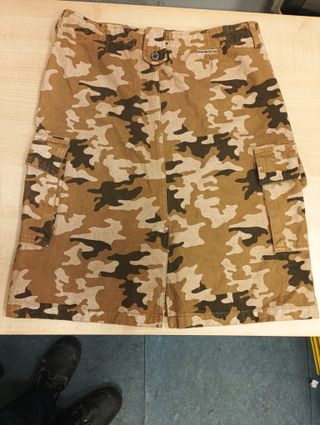 Estupenda falda ajustada con estampado de camuflaje marrón. Como nueva. Talla M. Largo 52 centímetros; cintura: 38 centímetros.