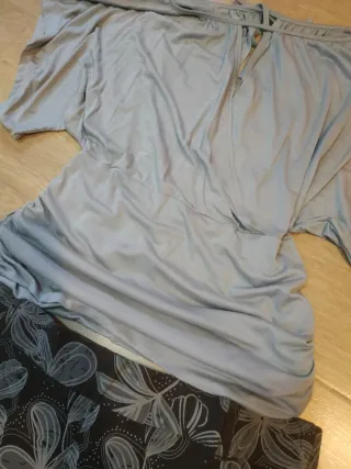 Conjunto de falda y jersey con un bonito estampado floral.medidas falda 95 y larga 64 - Falda con estampado floral en tonos marrones grises - Jersey de manga corta en color gris claro. - Talla única.