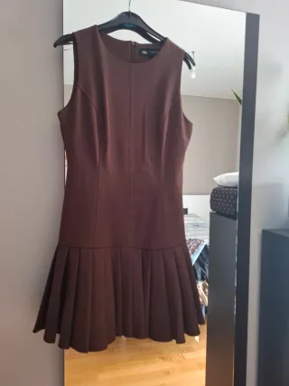 Vestido Zara marrón con falda plisada