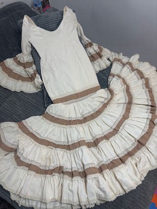 Traje de flamenca beige y marrón