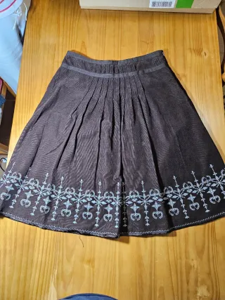 Falda midi marrón bordada T.38-39