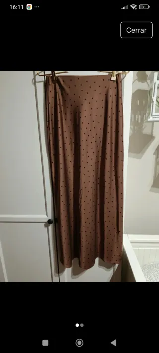 Falda Zara Raso Lunares Marrón