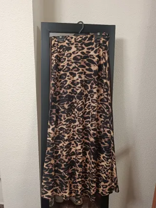 Falda marrón satinado, midi Falda animal print satinado, midi Talla 38 Nuevas a estrenar Las dos 15 euros Cada una 10 euros - Tejido satinado. - Diseño versátil.
