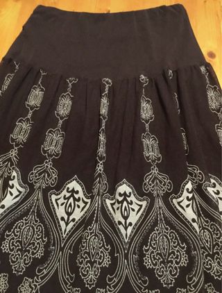 Talla M - Falda midi marrón bordado étnico/boho