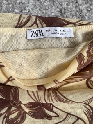 Vestido de Zara con un diseño elegante y favorecedor. - Escote en V pronunciado. - Falda con vuelo. - Cierre de cremallera lateral. - Detalle de etiqueta.