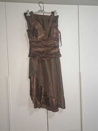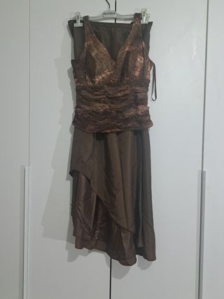 Conjunto de vestir marron de muy buena calidad,aún tiene la etiqueta.Se ve así porque esta sin planchar.Es falda y blusa.